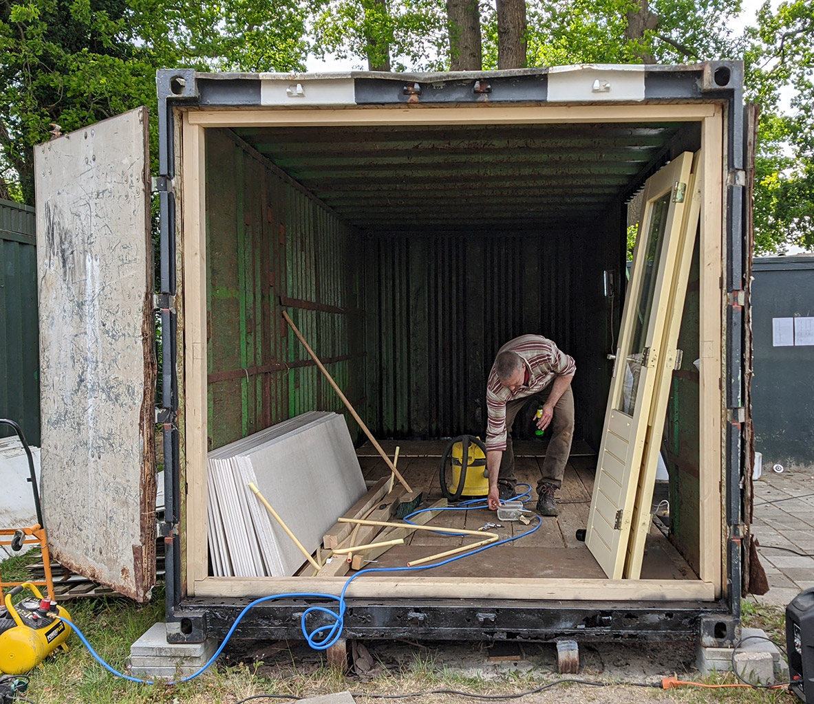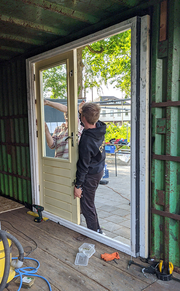 De beachcommissie is de afgelopen weken hard bezig geweest om de zeecontainer die vorig jaar bij het beachterrein is geplaatst om te toveren van een lelijk roestig lek metalen ding tot de mooie nieuwe kantine van de beach.